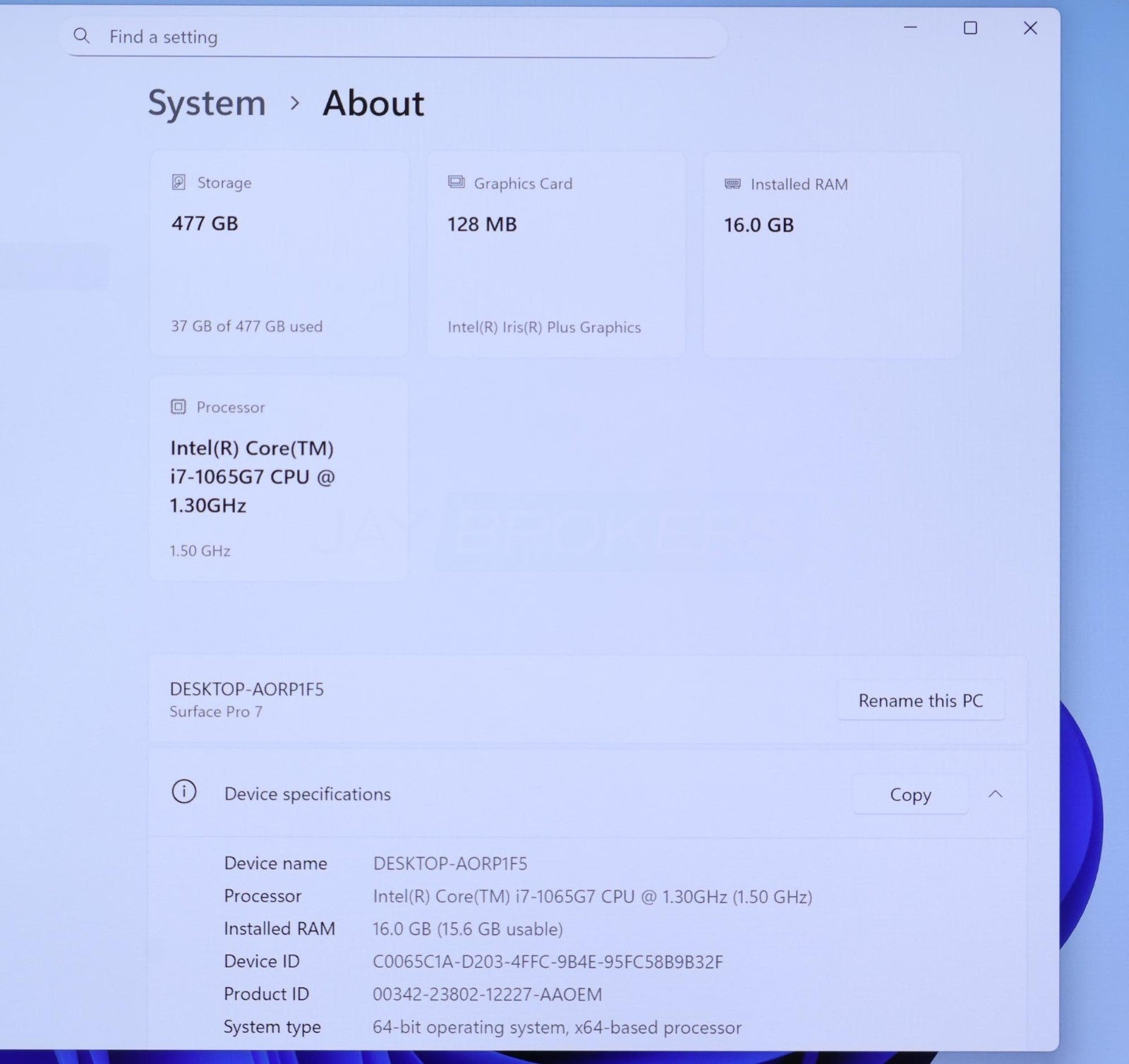 Microsoft Surface Pro 7 512GB Core i7-1065G7 1.3GHz 16GB Wi-Fi 12.3" W11H