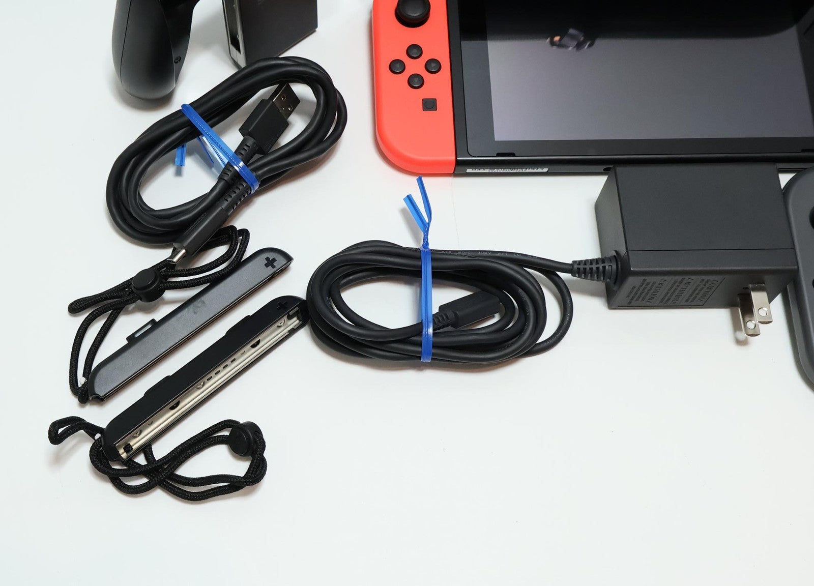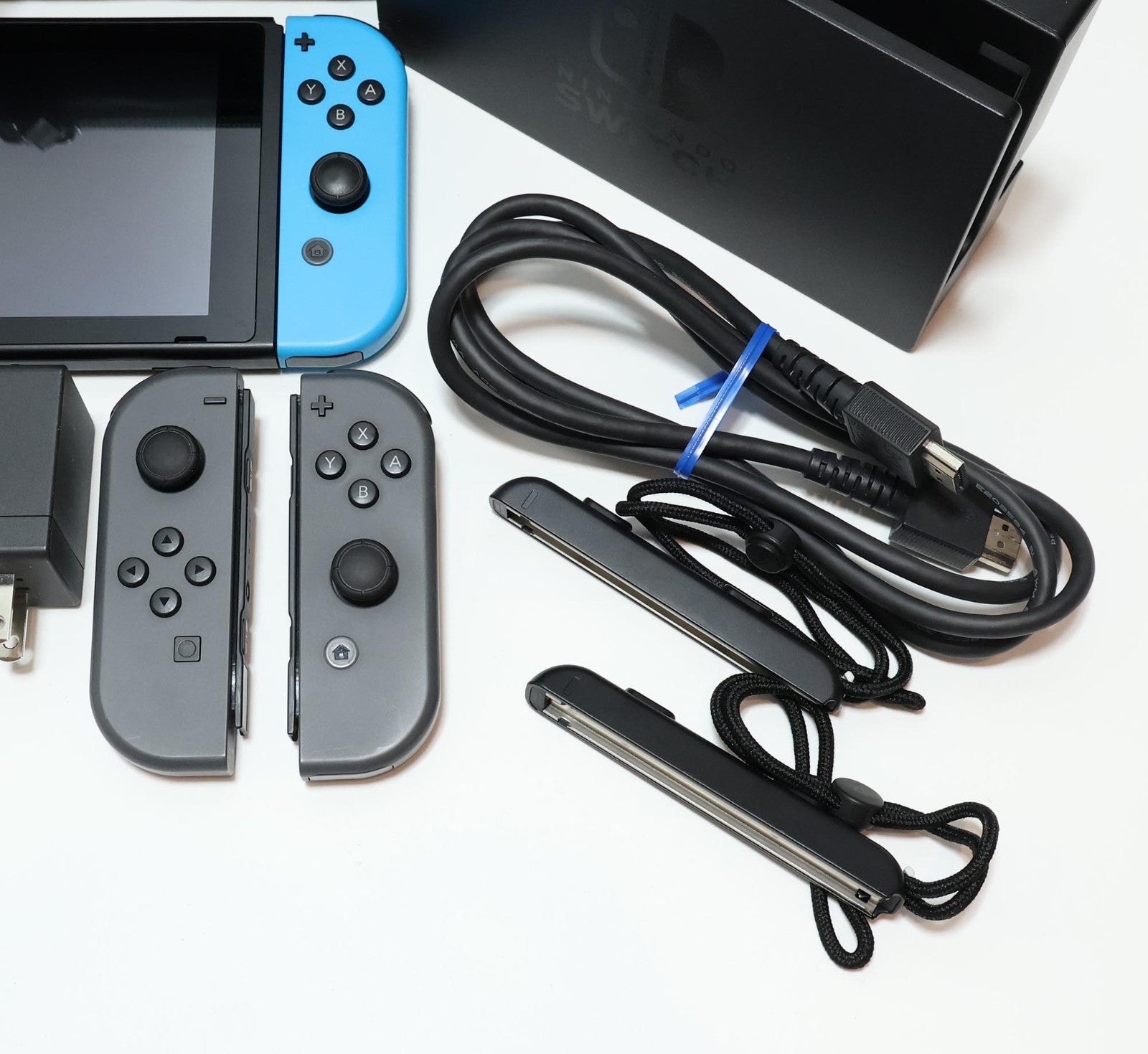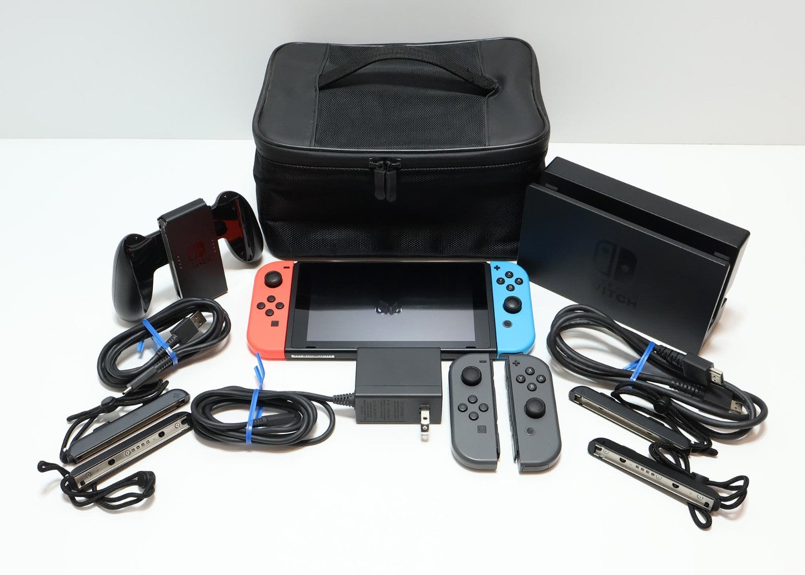 Includes: Console, Red/Blue Joy-Cons, Gray/Gray Joy-Cons, HDMI Cable, AC Power Adapter/Charger, 4x Joy-Con Caps, USB-A to USB-C Cable, Joy-Con Controller Adapter, Dock, Travel Case