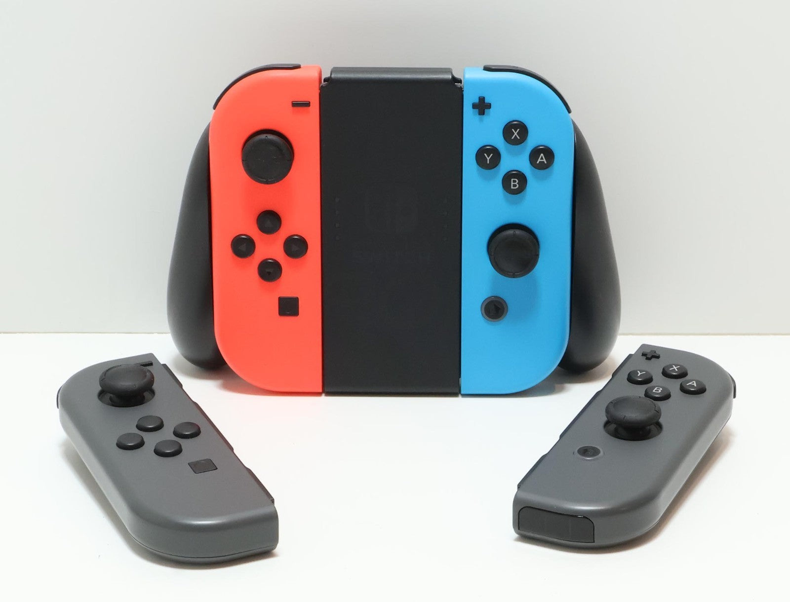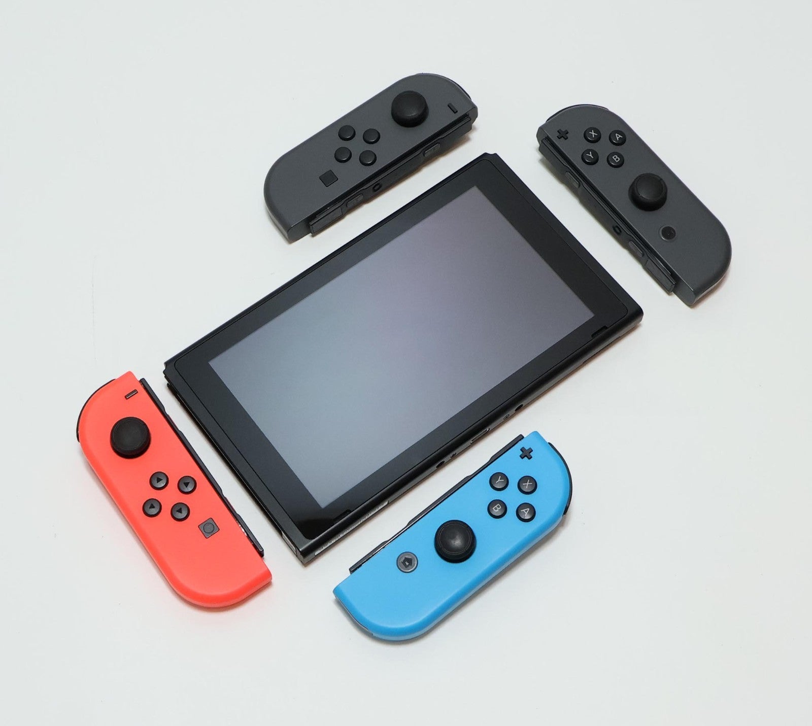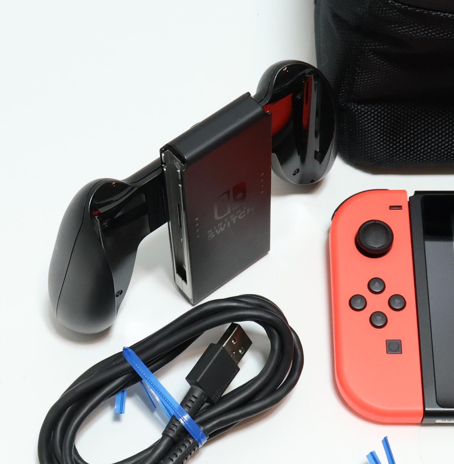 Includes: Console, Red/Blue Joy-Cons, Gray/Gray Joy-Cons, HDMI Cable, AC Power Adapter/Charger, 4x Joy-Con Caps, USB-A to USB-C Cable, Joy-Con Controller Adapter, Dock, Travel Case