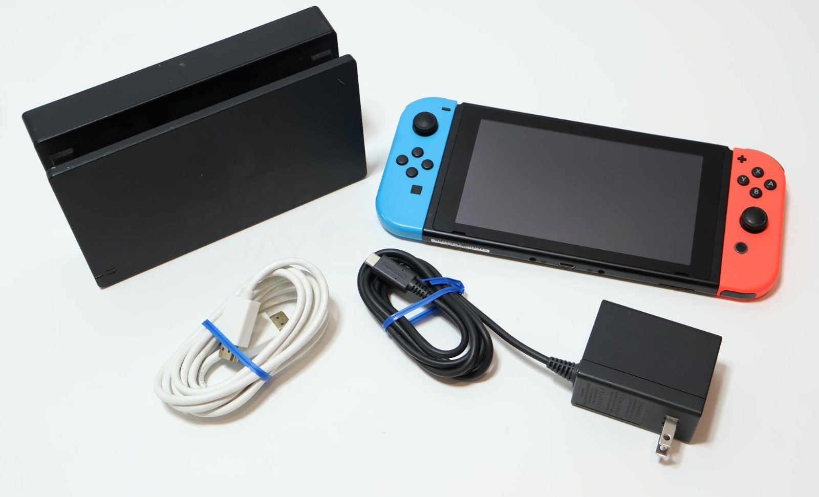 Includes: Switch, Left Joycon, Right Joycon, Dock, AC Adapter/Charger, Aftermarket HDMI Cable