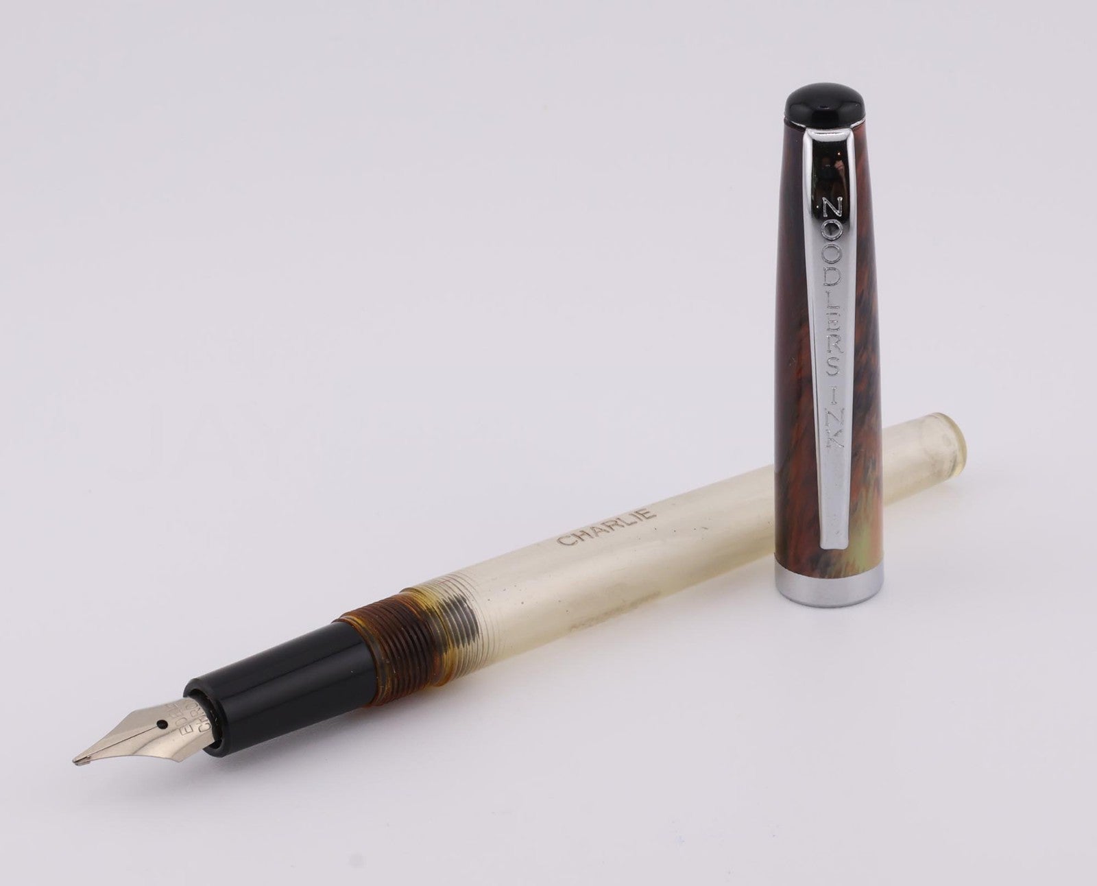Noodlers Ink Co. Charlie Fountain Pen Edel-Chrom Stahl Clear & Amber