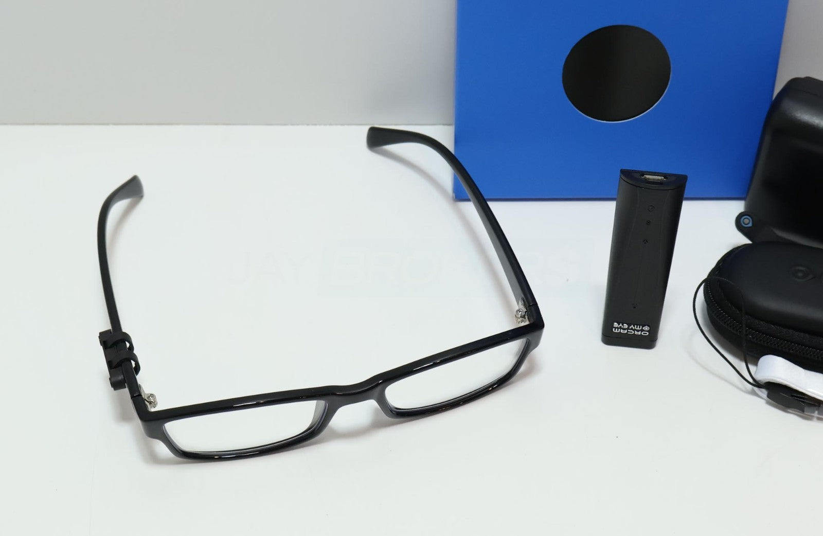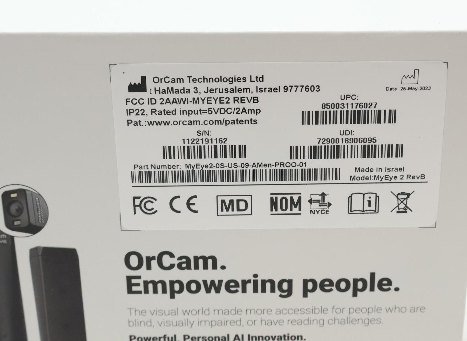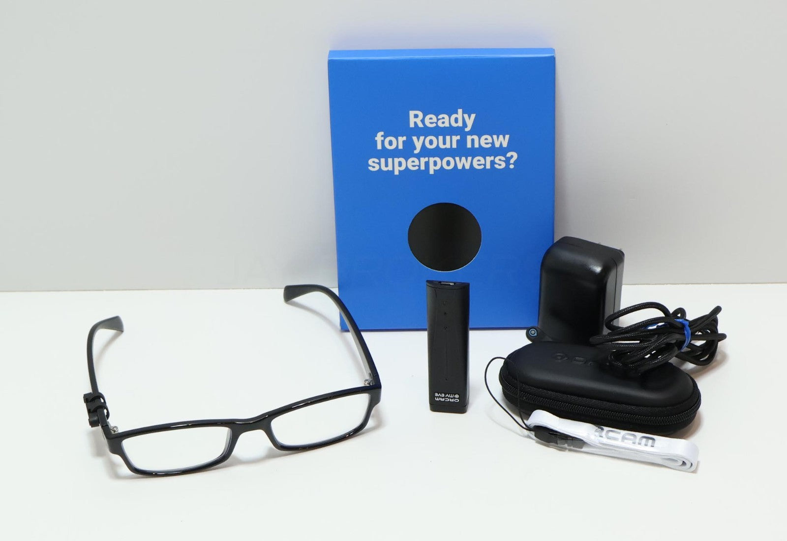 Includes: OrCam MyEye Device, Eyeglasses, USB Magnetic Adapter Piece w/ 2 Spares, Wall Charger, Magnetic Mount, Scissors, Clean Cloth, Lanyard, Carrying Case, Original Box