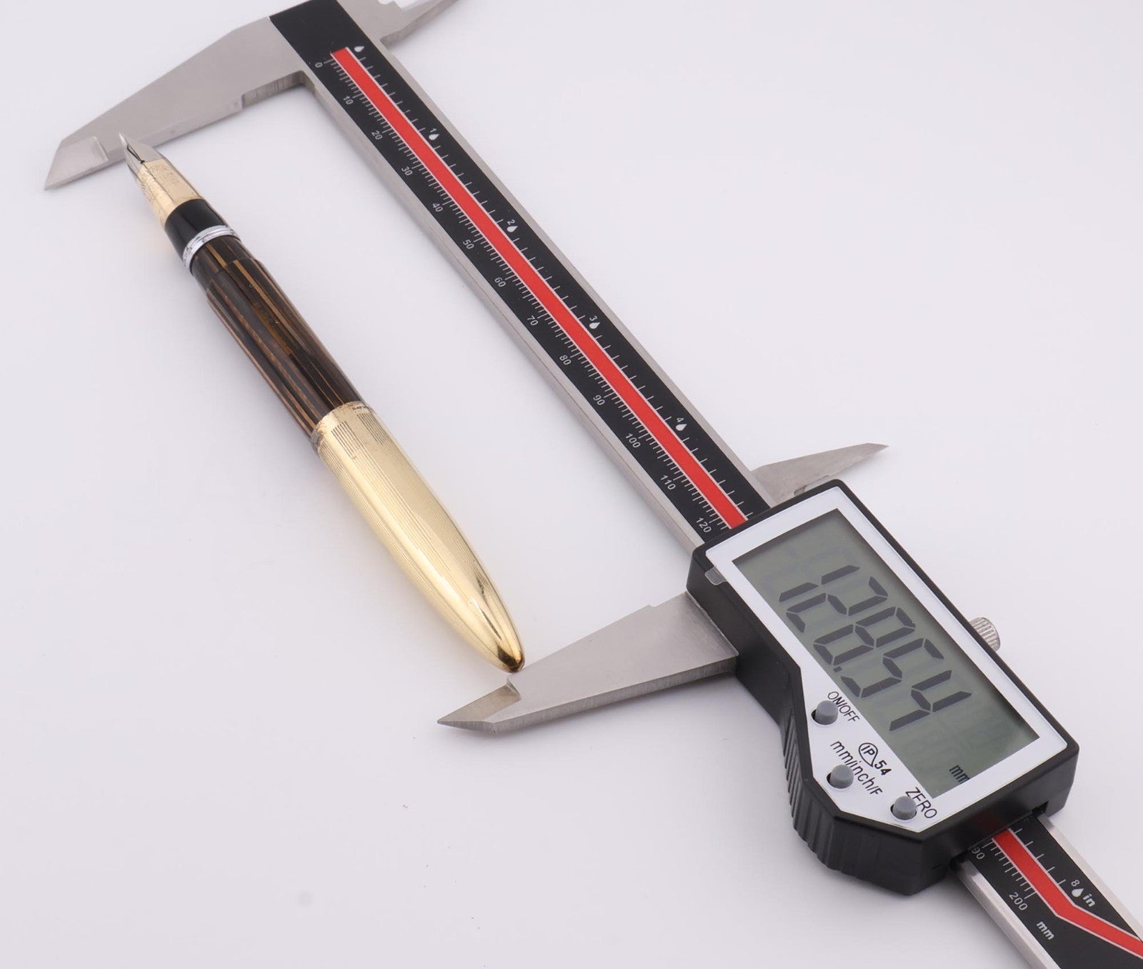 This pen is used. It shows average signs of wear and tear commensurate with age including scuff marks, scratches, nicks, and worn finishes. The finishes show discolorations throughout. The pen only fills with test water only if you push all air out while the nib is submerged in water and then vacuum it up (likely needs servicing). Please refer to the pictures to get a better idea of the physical condition. Any adjustments, inking, cleaning, and/or maintenance are the expense and responsibility of the new owner. All pictures included in this listing are of the actual item for sale.