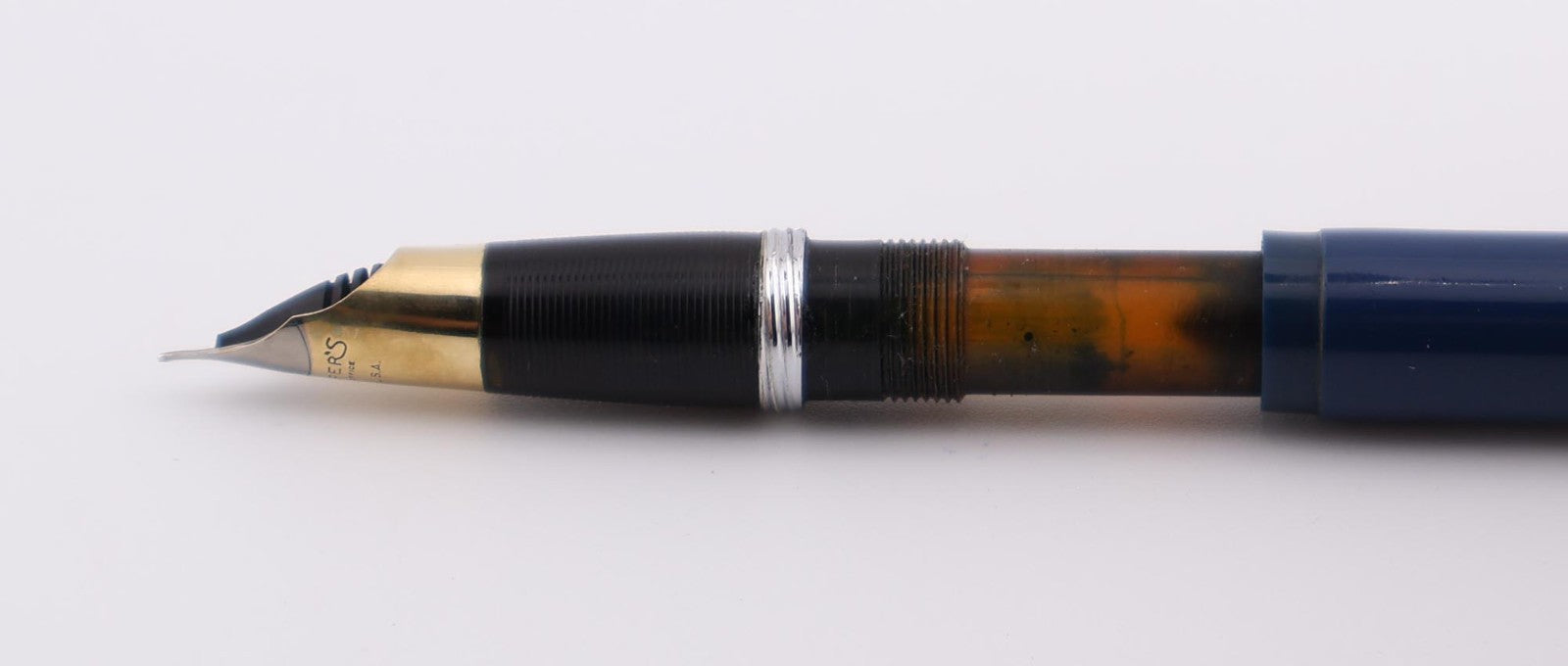 These pens are used. They show average signs of wear and tear including scuff marks, scratches, nicks, and worn finishes. There are discolorations on the metal. The fountain pen nib is ever so slightly bent. Please refer to the pictures to get a better idea of the physical condition. The pen sucks and holds water, but the plunger feels very stiff when pulling/pushing. The pencil's lead goes in/out and it writes. The display case may not be original to the item. Any adjustments, inking, cleaning, and/or maintenance are the expense and responsibility of the new owner. All pictures included in this listing are of the actual item for sale.