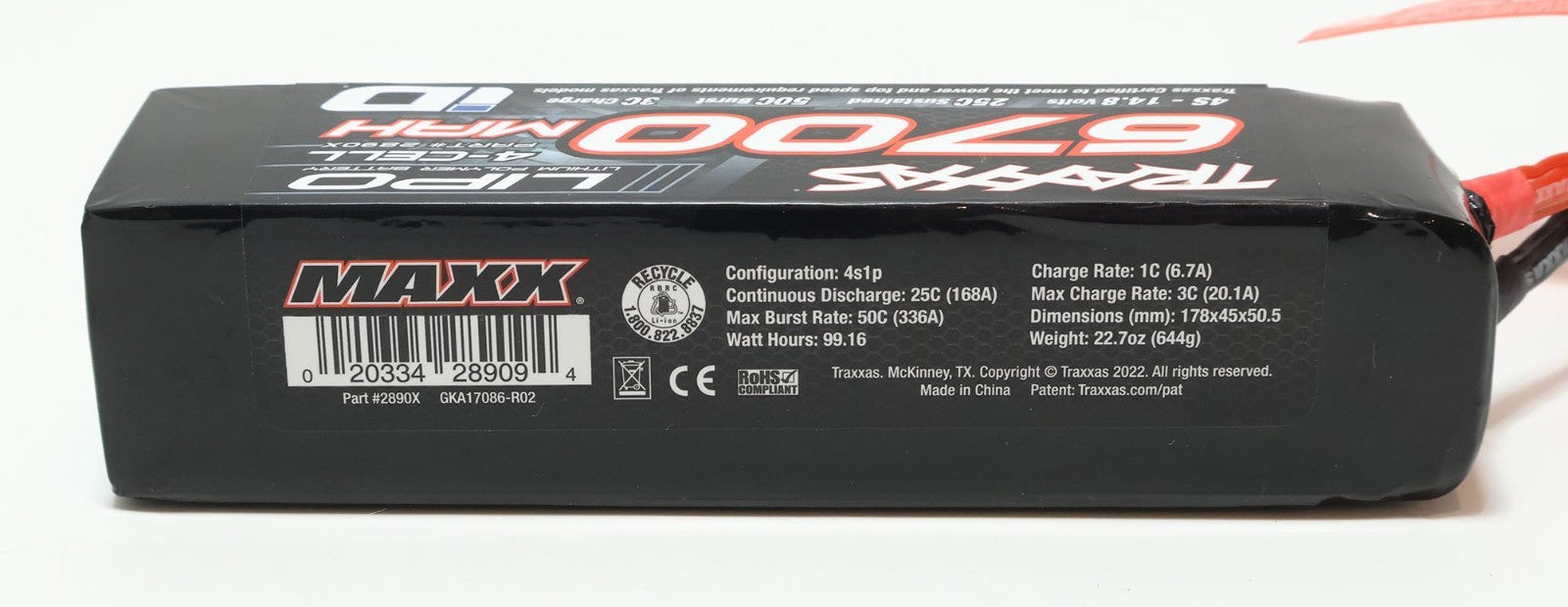 Traxxas 2890X 4S Power Cell LiPo Battery 6700mAh 25C 99.16Wh 14.8V