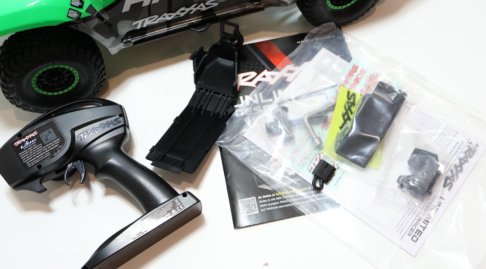Includes: RC Car Body, RC Car Shell, Remote Control, Battery Undercarriage Cover, 4S Accessory Adapter Retainer, 4S Accessory Adapter Cover, Maintenance Kit, Manual, Original Box (RC Car Battery NOT Included)
