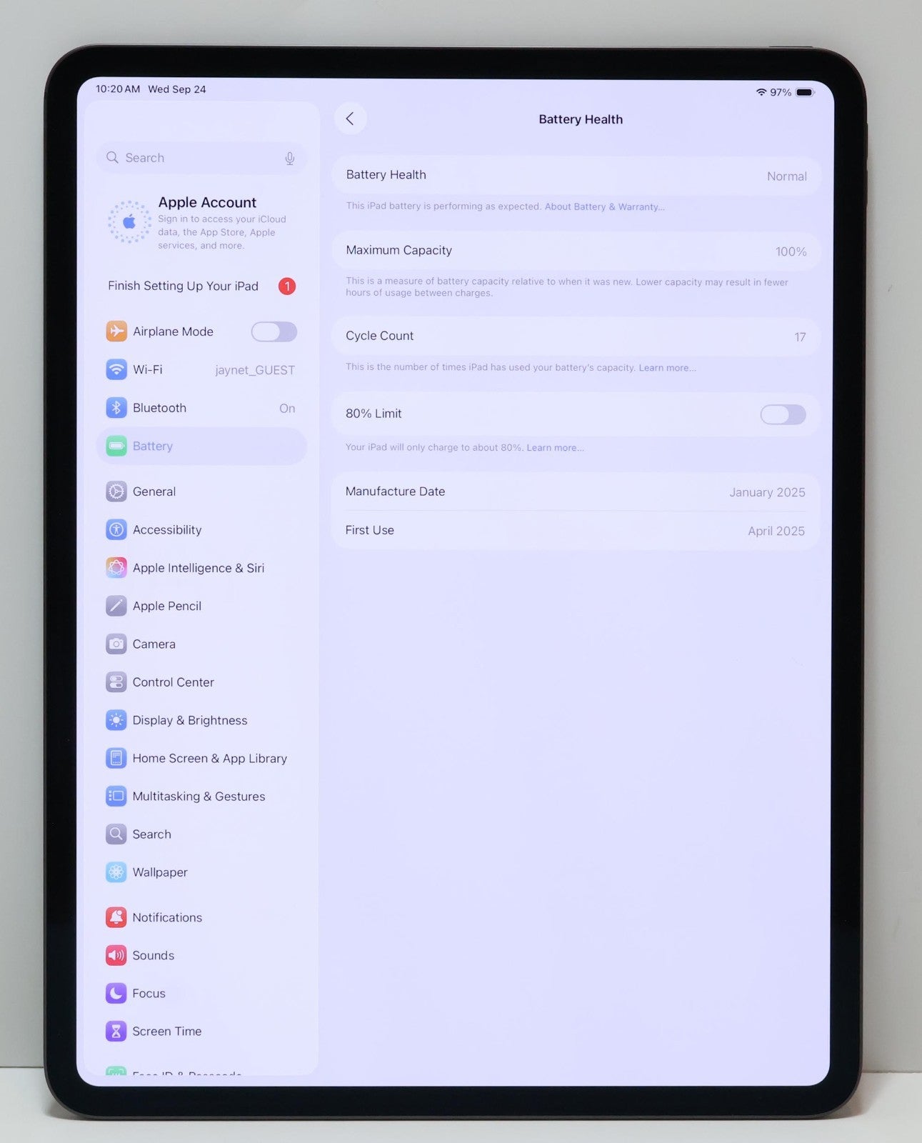 This item is gently used. The item shows minor signs of wear and tear including scuff marks and worn finishes. Please refer to the pictures to get a better idea of the physical condition. The screen has no dead pixels. The battery holds a solid charge (17 Cycle Count, 100% Maximum Capacity). The item has been tested and is fully functional. The original manufacturer limited warranty is valid through April 17, 2026.