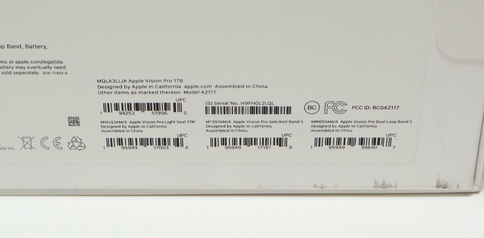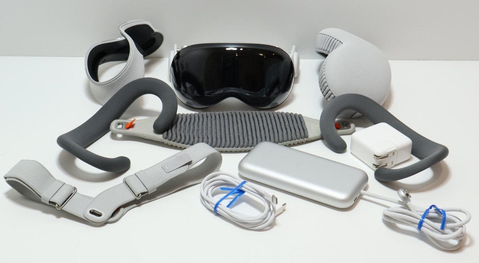 Includes: Apple Vision Pro, Light Seal, Light Seal Cushions, M Solo Knit Band, Dual Loop Band, Battery, Cover, 30W USB-C Power Adapter, USB-C Charge Cable, Original Box