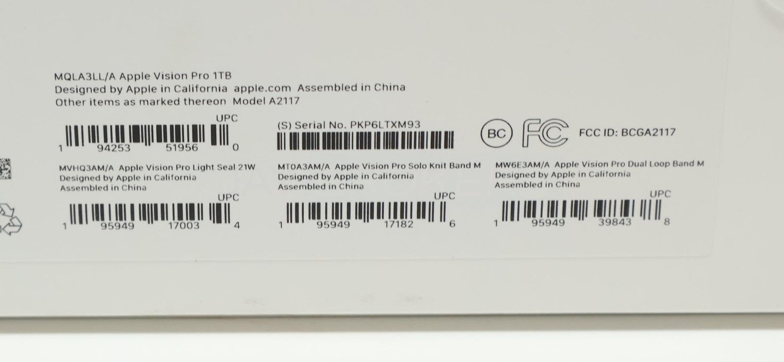 Includes: Apple Vision Pro, 21W Light Seal, Light Seal Cushions, M Solo Knit Band, M Dual Loop Band, Battery, Cover, 30W USB-C Power Adapter, USB-C Charge Cable, Original Box