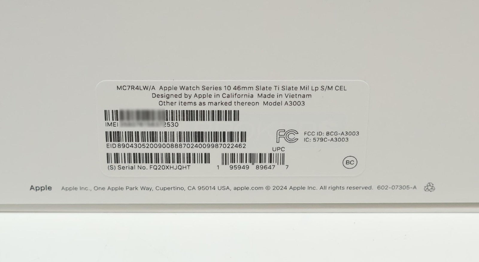 Serial Number: FQ20XHJQHT